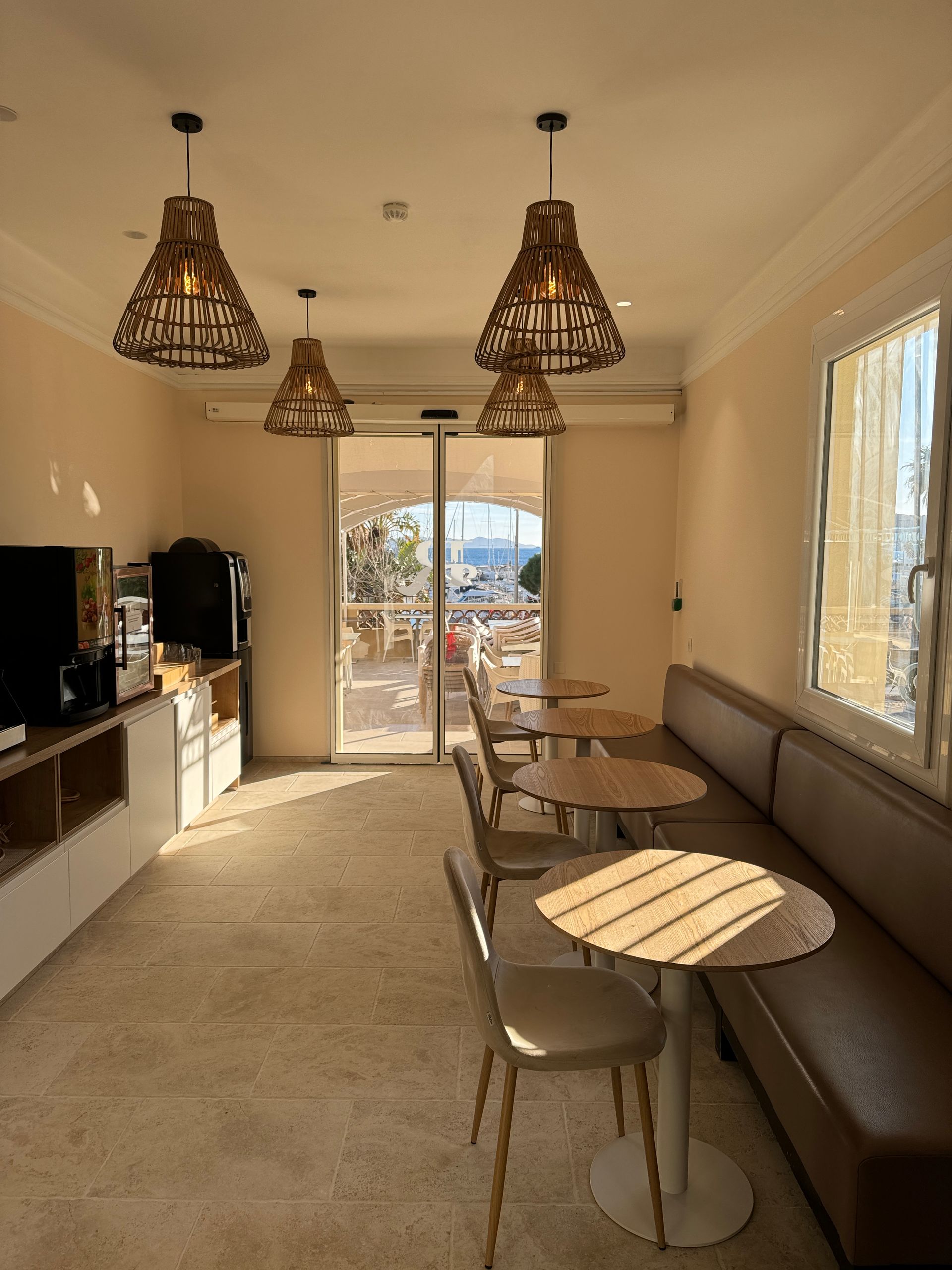En plus des chambres, vous pourrez profiter d'une belle terrasse face au port et aux Iles d'or, sur laquelle vous pourrez prendre votre petit déjeuner, ainsi qu'un service de réservation de place de parking sur demande (entre avril et novembre) lors de votre réservation en ligne.